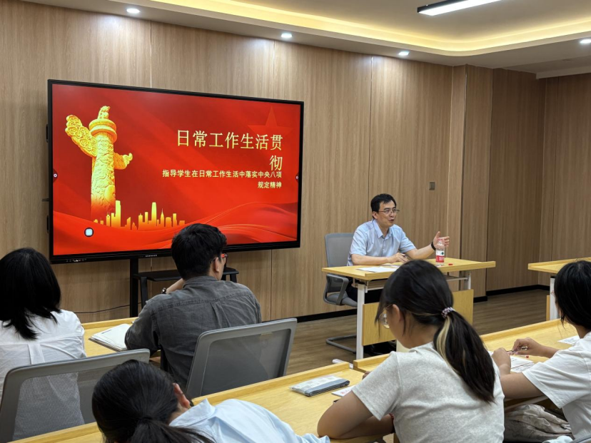 杨华就员工党员如何在日常工作生活中贯彻中央八项规定精神提出要求。一是要树立优良学风,发挥模范作用。刻苦学习专业知识,做到诚信考试、认真完成作业和科研任务。二是密切联系同学,服务同学成长。从小事小节中规范言行,在日常点滴中锤炼作风。三是弘扬勤俭节约,反对铺张浪费。带动身边同学共同养成节约的好习惯,营造文明健康的校园生活氛围。四是严守纪律规矩,保持清正廉洁。从员工时代起就增强纪律和规矩意识,扣好“第一粒扣子”。