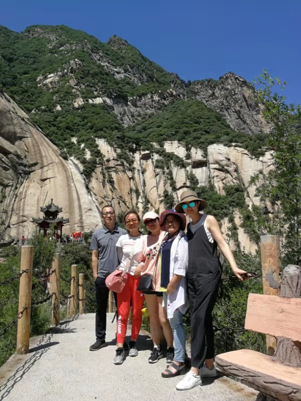 到达仙峪,姜书记强调安全和其他注意事项后大家顺着崎岖蜿蜒的山路向指定地点出发。仙峪,又名车箱谷,在华山峪西,与华山峪仅一岭之隔。夏日的仙峪满目青翠,重峦叠嶂,山谷两侧山石险峻,谷中河流湍急,风景秀丽。一路上,大家欢声笑语,氛围格外轻松,时而快步前进,时而驻足观景拍照,抑或到浅水湾掬一捧清澈的河水纳凉,工作的紧张和压力在此得到了尽情的释放。攀爬过程中,大家团结友爱、互帮互助、相互扶持。经过近一个半小时的攀爬,大家陆续到达了山顶的逍遥亭。蓝天、青山、凉亭、笑脸,构成了一幅唯美的画面,大家纷纷拍照留念。