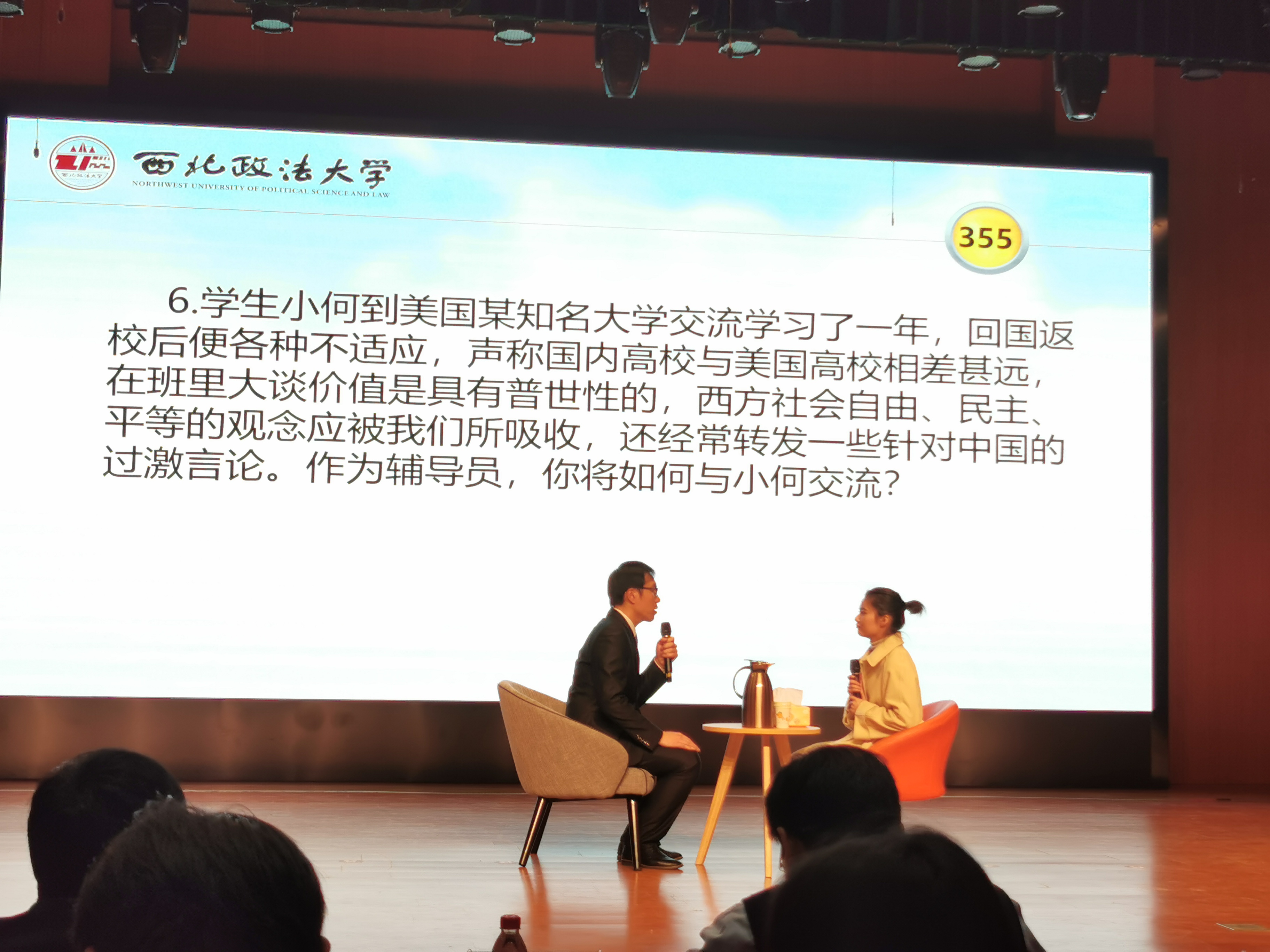 公司第五届辅导员素质能力大赛,从今年5月份筹备以来,全校辅导员广泛参与,精心准备。公司辅导员在初赛阶段共获得案例分析三等奖、理论宣讲三等奖、谈心谈话一等奖。经过笔试、案例分析、理论宣讲、谈心谈话4个环节的层层比拼和激烈角逐,最终进入决赛。决赛分为理论宣讲和谈心谈话两个环节,梁传龙老师凭借扎实的知识储备、完备的职业能力在两个环节均表现优异,赢得了在场师生的阵阵掌声,展现了公司辅导员队伍突出的职业能力和良好的精神风貌。