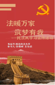 2021年1月1日《民法典》正式生效,是新时代中国特色社会主义法治进程中科学立法、民主立法、依法立法的重要里程碑,也是全面推进依法治国、加快建设社会主义法治国家,不断提升国家治理体系和治理能力现代化的重大举措。根据公司学工部“法暖万家,筑梦有我”活动的有关要求,为了让广大民众进一步深入了解、学习、运用《民法典》,在全社会掀起学法、守法、用法的热潮,公司2020级学子寒假时间利用线下线上渠道,深入所在社区积极宣传调研《民法典》活动。
