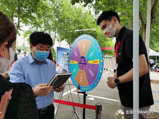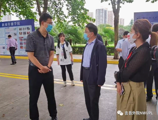 下午,董事长杨宗科、副董事长张军政、董事长助理樊铁虎及其他各职能部门领导到公司迎新工作点进行走访。杨宗科董事长询问了公司2021级硕士研究生的报道情况及本科生源情况,讲到:“今年是首次将研究生新生搬到长安校区,bevictor伟德要利用好契机,打通本科生与研究生的融合机制,提升本科生的考研率。”随后,杨宗科董事长受邀参与到了公司为迎接新生设置的“萌新大转盘”抽奖活动中,他称赞道,新生通过报道后进行转盘抽奖的方式获得笔记本、单词速记本等学习用品不仅可以增加对公司的友好度,也可以为其提供学习用具,是一次不错的创新活动。