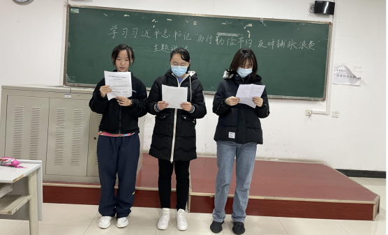 2021级新生各班利用晨读时间召开了主题学习班会。2班学委王思维同学说道,习近平总书记一直对粮食安全问题高度重视,2013年1月就作出重要指示,要求厉行节俭,反对浪费。张雨欣同学通过引用新闻对部分公司存在食物浪费和员工节俭意识缺乏的问题做了举例,同时呼吁班级同学要在就餐过程中文明用餐,珍惜食物,按量取食。