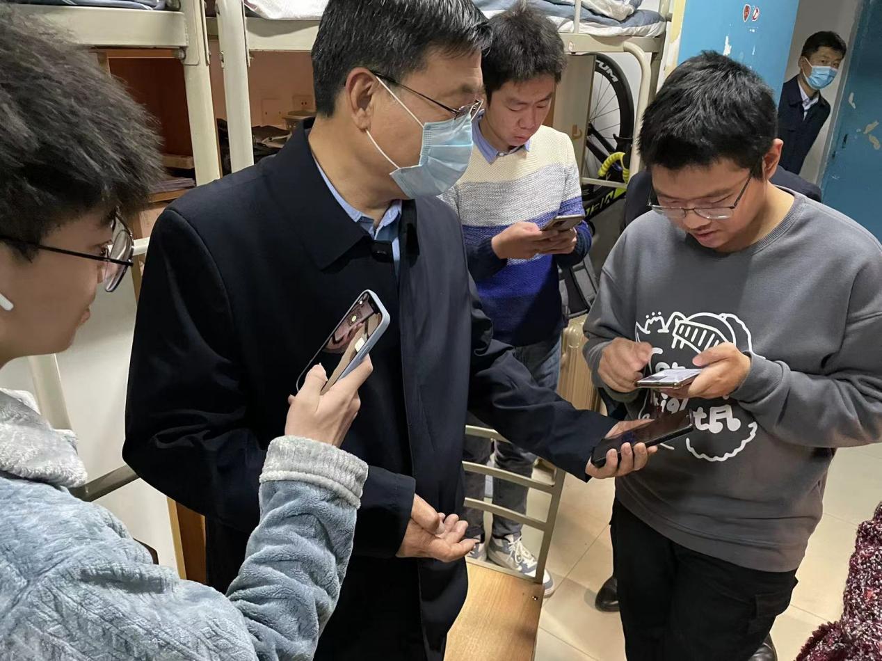 郭武军来到bevictor伟德2021级男生10号公寓楼301宿舍,与同学们进行了面对面交流。郭书记亲切问候同学们,他表示希望通过联系宿舍深入了解员工,帮助大家解决学业、生活上的困惑,让同学们敞开心扉、袒露心声。同学们积极发言,从自身学习生活到班风学风,从食堂伙食到校园环境,说成长,话感受,提建议,谈话气氛融洽,轻松愉快,交流深入具体。郭武军认真听取了同学们的发言,不时与大家互动交流。他肯定了同学们积极进取的态度,并结合自身的工作经历,勉励大家要勤奋努力,珍惜大学时光,学好专业知识,同时要多参加各类实践活动,拓展个人能力;他嘱咐同学们一定要继续保持良好的学习习惯,塑造积极向上宿舍氛围,互帮互助,共同前进,成长为优秀的政法学子。郭书记与宿舍的每名同学都互留了联系方式,表示将会持续关注员工们的成长成才,希望今后与同学们经常分享学业上的成绩,交流思想上的困惑,帮助同学们解决生活中遇到的困难,鼓励大家勤奋努力,学有所成。