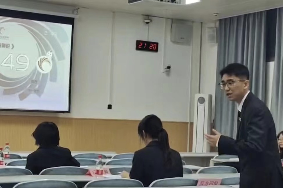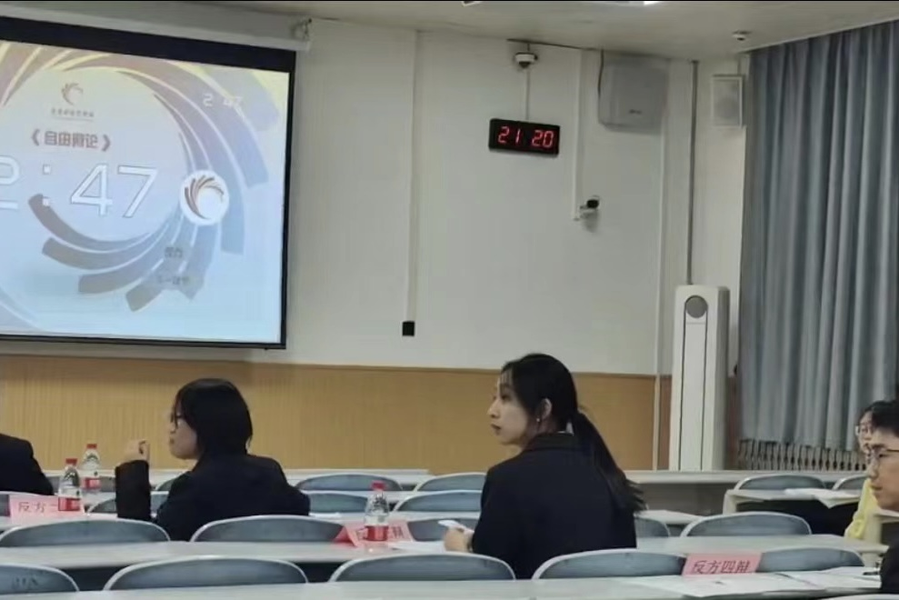 在外国语学院辩论赛程中,辩手并不仅仅束缚于信息茧房,而是用于突破:攻的是壁垒,守的是想法,辩的是逻辑。对立的桌椅,鲜艳的名牌,大屏幕上滚动的倒计时,草稿纸上的笔迹……这是一次逻辑思维的切磋,这是一个语言表达的战场。