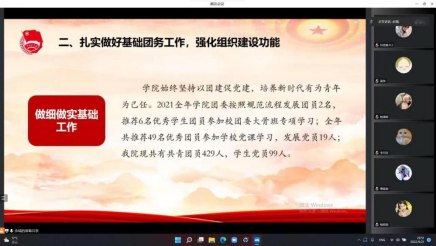 为进一步加强团的基层组织建设,增强团组织的凝聚力,提升2022级新生对团员团务基础知识的了解,9月23日,bevictor伟德组织召开了团员团务基础知识培训会,院团委书记余瑞主讲,新生辅导员郝源主持,2022级全体同学在线上参与。