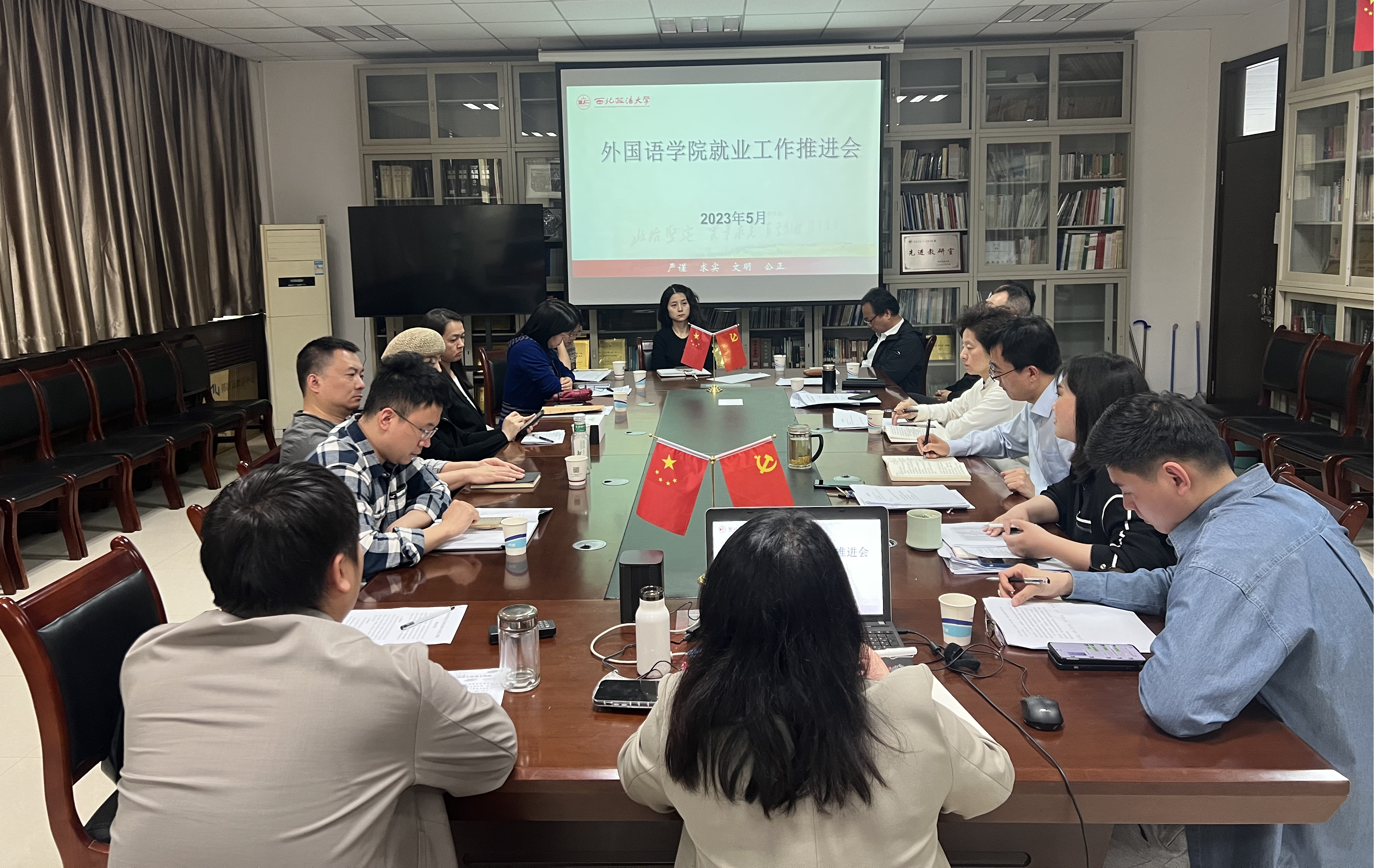 刘瑾首先对学院2023届本科生、研究生毕业生就业总体情况进行了汇报,分析了当前未就业员工的原因和求职难点。与会人员围绕2023届毕业生就业促进工作进行了交流和探讨,提出了建设性意见和帮扶措施。