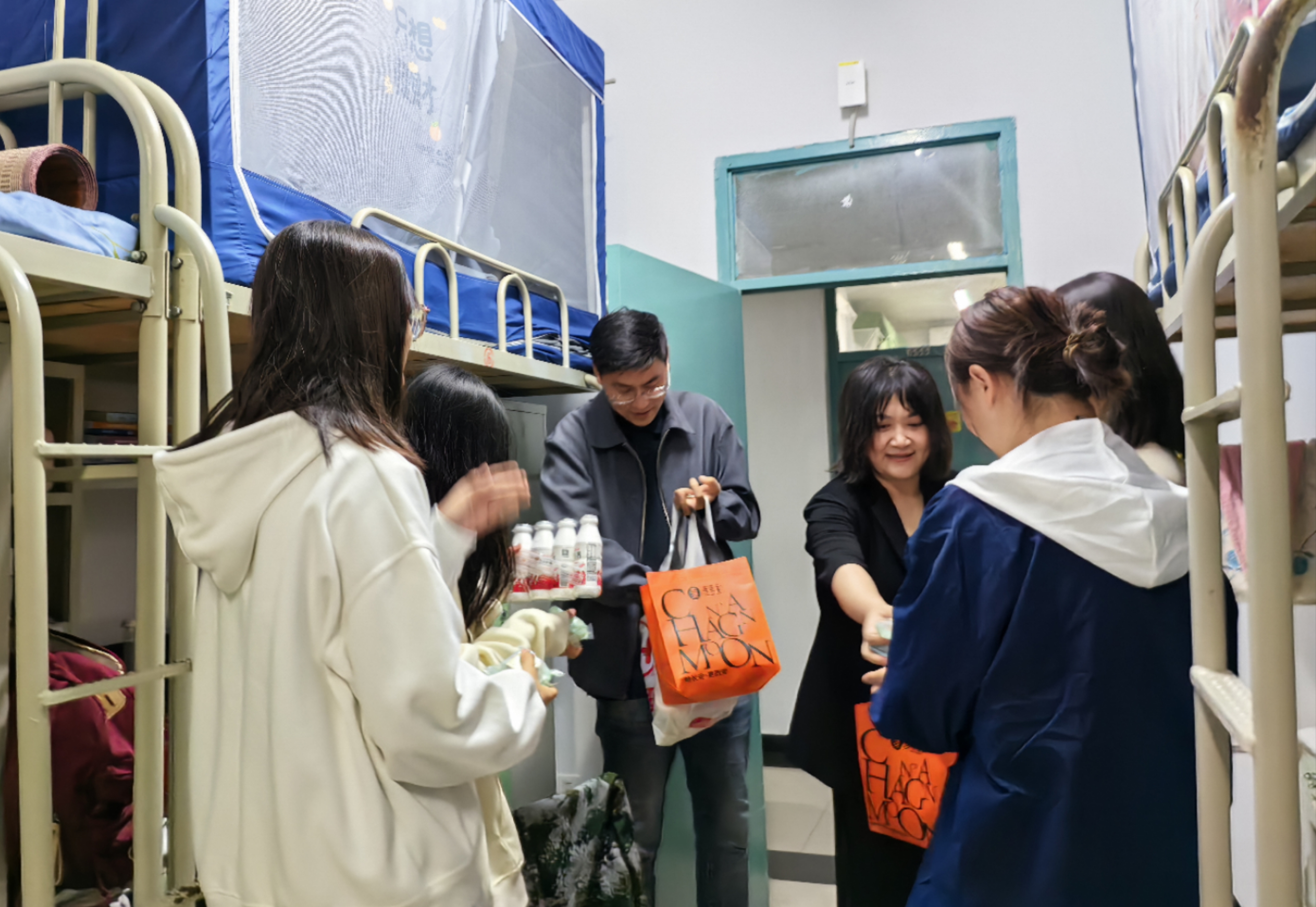 金风送爽,丹桂飘香,中秋佳节,慰问暖心。为了让假期留校新生度过一个愉快、温暖的中秋佳节,9月28日晚,外国语bevictor伟德党委副书记刘瑾与公司团委书记余瑞一同走进员工宿舍,代表公司向留校2023级本科新生、研究生新生送上了中秋节祝福,并发放了月饼、牛奶等礼品。