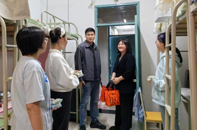 在走访慰问过程中,刘瑾与亲切地询问了2023级新生开学以来的适应状况,关心了大家的宿舍生活情况,一方面希望大家可以在假期中熟悉适应校园生活,另一方面要注意宿舍用电安全和增强假期出行安全意识。同学们也为前来走访的老师们送上了真挚的祝福,祝愿老师们中秋愉快,幸福安康!