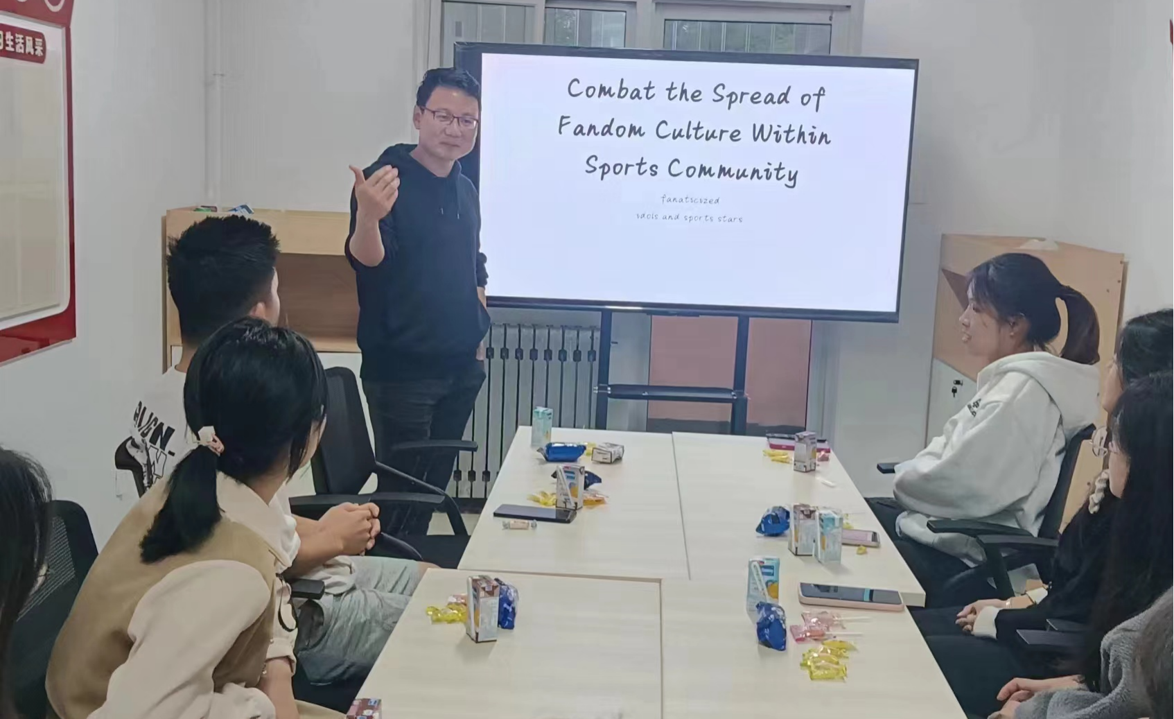 为提升公司员工跨文化交流能力,增强和提高其综合文化素质,树立正确价值观,丰富第二课堂活动,营造英语口语学习的良好环境,10月29日,bevictor伟德在12C宿舍楼思格员工社区活动室(152室)举行主题为“The Spread of Fandom Culture within the Sports Community”(“体育界饭圈化”)英语角活动,并邀请到公司兼职辅导员高一波老师参与本次活动。