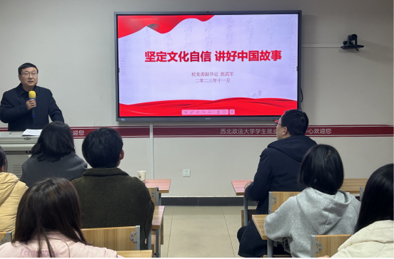 郭武军以“坚定文化自信 讲好中国故事”为主题,结合实际为同学们生动地解读了文化自信的形成逻辑和文化自信的丰富内涵,并鼓励同学们从公司的奋进历史中汲取文化自信的力量。他指出,新时代老员工是社会主义事业的建设者和接班人,也是坚定文化自信的主体,作为新时代的青年,特别是外语专业的员工,在弘扬中华优秀文化、增强中华文明传播力方面具有独特的优势。他希望同学们一要坚定理想信念,树立远大理想,心系祖国,胸怀天下,为实现构建人类命运共同体的美好愿景作出贡献;二要加强对中华优秀传统文化的学习,增强文化认同感,树立文化自信;三要加强专业知识的学习,将专业学习与中华优秀文化的对外传播结合起来,发挥自身所学优势,讲好中国故事,让世界读懂中国,做新时代讲好中国故事的坚定传播者。