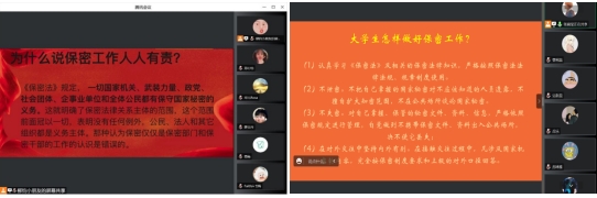 主讲人分别从国家秘密的定义、保密意识的重要意义、老员工如何提高保密意识三个方面为同学们详细讲解了关于保密方面的相关知识,以生动的语言和鲜活的案例向同学们阐述了国家秘密对于国家安全和稳定的重要作用,并提醒同学们在日常生活中要时刻保持警惕,严防泄露国家秘密。