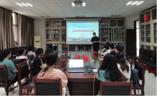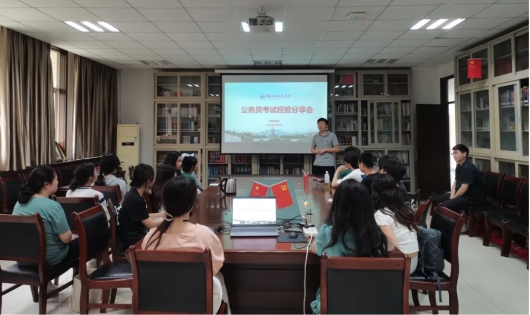 此次分享会邀请了公司2024年国考被拟录取2021级英语笔译研究生杨月和省考被拟录取的2020级英语专业本科生张馨怡作为分享人。张馨怡讲解了国考、省考、选调生的报考要求及相关规定,建议同学们在岗位选择时要结合个人意愿,考虑地理位置、岗位性质、难易程度等因素选择适合目标岗位。同时提醒大家一定要珍惜应届毕业生的身份,提前搜集考公的相关信息,尽早着手准备。