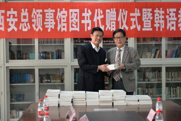 最后,吴世天向公司转交韩国国际交流财团赠送的图书,与会人员合影留念。