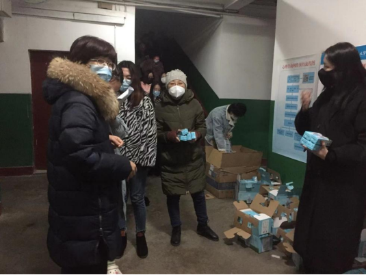 刘红岭在雁塔校区为研究生发放抗疫物资和慰问品