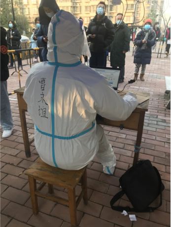 曹永谊参加完核酸采集志愿工作任务后坚定地说:“今天的主要任务就是协助做好核酸检测,做好人员扫码登记、传递检测试剂、维持检测秩序等工作,体会到一线医护人员的不容易,虽然临近晚上很冷,但是每一个人都坚定信念、坚持战斗。”