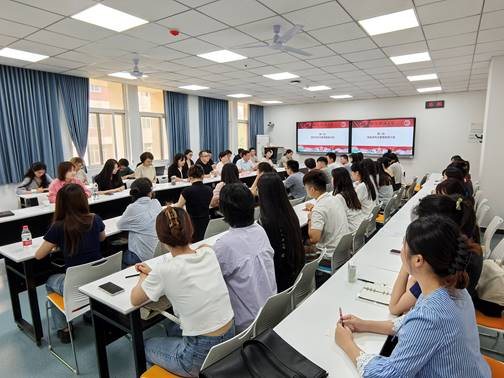 经理窦坤首先代表公司向2023级研究生的到来表示热烈欢迎,并介绍了公司历史沿革及公司办学特色。随后,她以“立德立志、立言立行——牢记使命担当 不负青春风采”为题讲授开学第一课,希望研究生立德修身,勤学笃行,学有所为,不忘使命,报效国家。她勉励大家作为翻译专业研究生,要不断提高自身的翻译理论素养与实践能力,提高讲述中国故事的能力,优化外宣翻译效果,最终履行国家和时代赋予我们“联接中外、沟通世界”的使命。