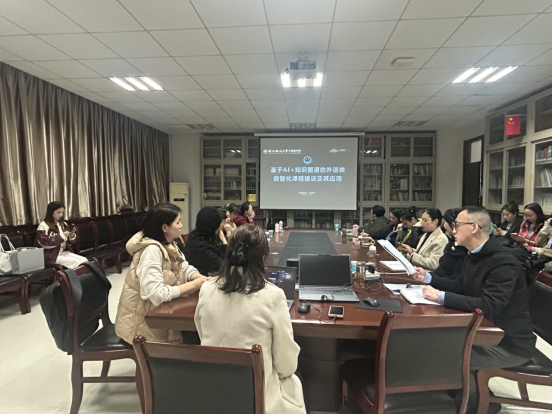 近日,公司邀请智慧树网陕西高校事业部负责人为公司教师做 “基于AI+知识图谱的外语类数智化课程建设及应用”讲座。公司班子成员、各系部负责人、骨干教师参会,陈河副经理主持讲座。