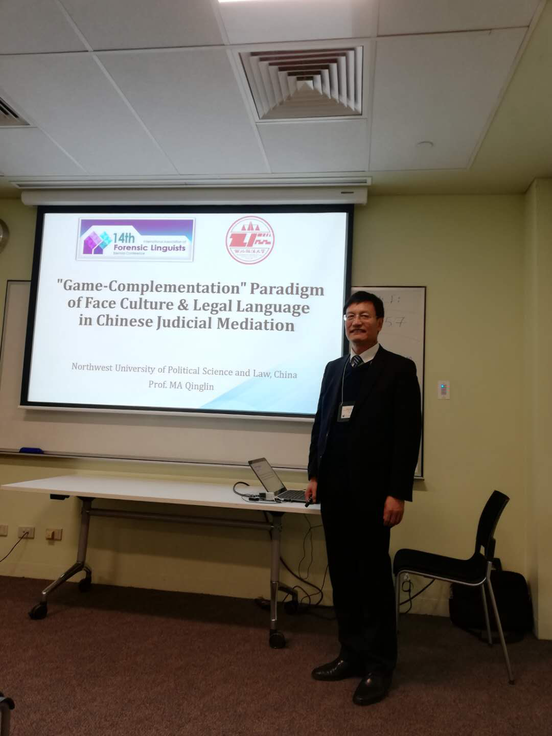 为期五天的大会共包括3个法律语言学工作坊、7场主旨发言、3场专题研讨、1个圆桌论坛、26场平行讨论、1场海报展示、1场研究生研讨、2场法律语言学新书发布会。马庆林教授在平行论坛里做了“司法调解中的面子文化与法律语言研究——‘博弈-互补’范式”的主旨发言,通过建立博弈-互补模型揭示人民调解中中国的面子文化与调解语言之间的关系,并通过具体的工伤赔偿案例进行了全面的调解语言博弈互补分析,受到参会人员的高度肯定并引发热议。本次会议是法律语言学领域的国际顶级学术会议,是法律语言领域难得的一次见面交流会,因此马庆林教授还借此时机与知名专家如Janet Ainsworth,John Gibbens, Chris Heffer等人进行亲切的交流,介绍公司的基本情况,并对上述学者发出了前来公司进行学术交流的诚挚邀请。